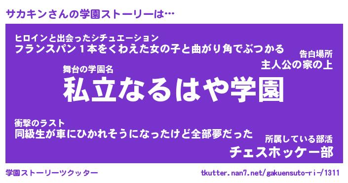 | ヒーロー風カッコイイあだ名 | 『スーパーサカキン』『暗黒騎士サカ』 |