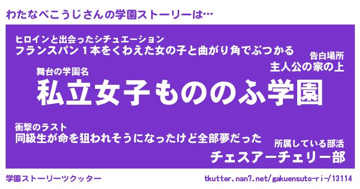 | 女子向けラノベタイトル風あだ名 | 『誰かこのわたなべこうじを説明してください! ~契約から始まるウェディング~』 |