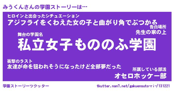 | 告白場所 先生の家の上 …「ふぃぎゅこ」 | 2月17日 06:24 |