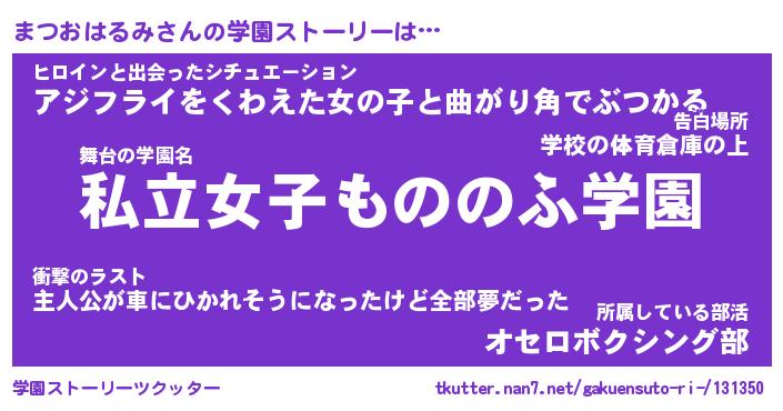| 女子向けラノベタイトル風あだ名 | 『まつおはるみ姫と円卓の騎士』 |