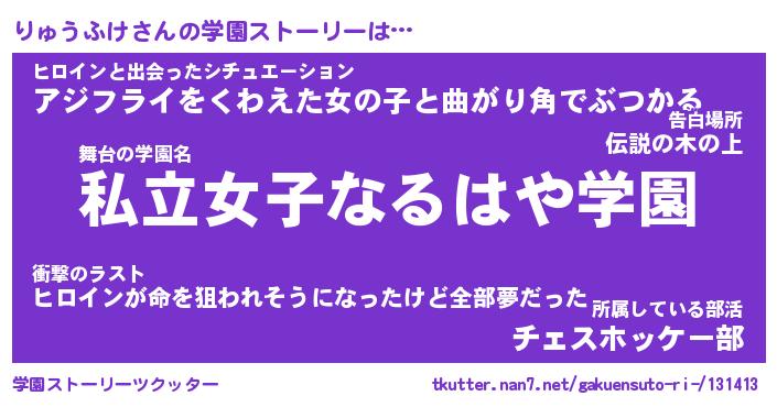 | ファンタジー風あだ名 | 『リュフェル』『エターナルリュウフケー』 |