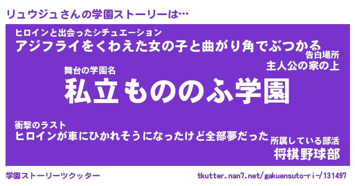 | 男性向けラノベタイトル風あだ名 | 『リュウジュの憂鬱』 |