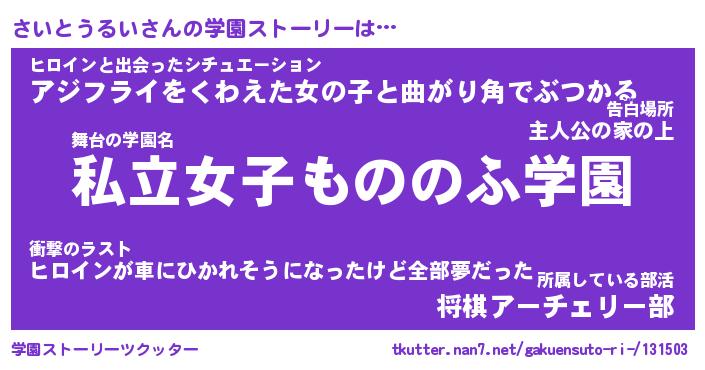 | 告白場所 先生の家の上 …「ふぃぎゅこ」 | 2月17日 06:24 |