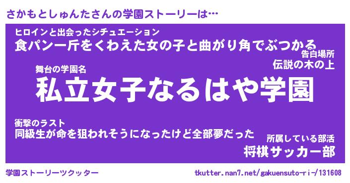 | 男性向けラノベタイトル風あだ名 | 『サカモトシュンタアートオンライン』 |