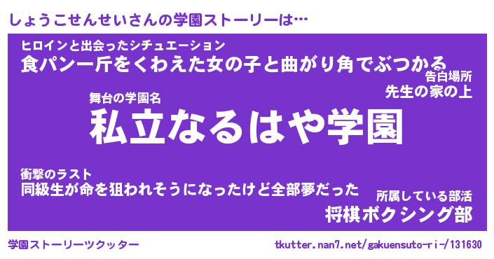 | 告白場所 先生の家の上 …「ふぃぎゅこ」 | 2月17日 06:24 |