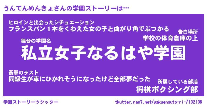| 男性向けラノベタイトル風あだ名 | 『ウンテンメンキョアートオンライン』 |