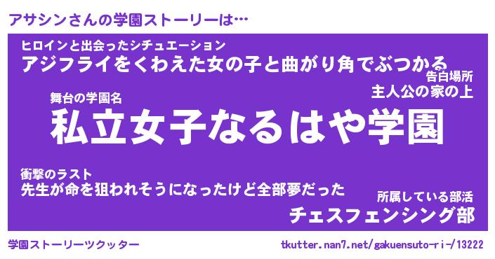 | ファンタジー風あだ名 | 『アサフェル』『エターナルアサシンー』 |