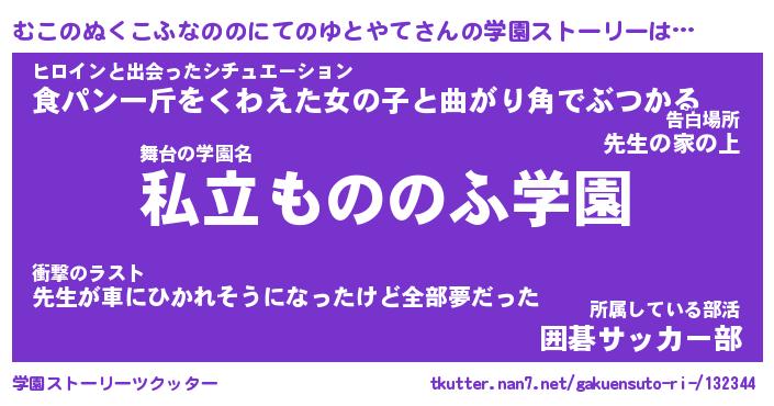 | 学校 | むこのぬくこふなののにてのゆとやて校長が勤める学校の名前『私立男子ムキムキ小学校』 |
