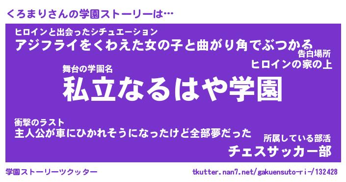 | 告白場所 先生の家の上 …「ふぃぎゅこ」 | 2月17日 06:24 |