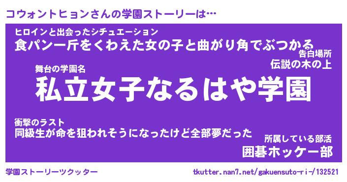 | 男性向けラノベタイトル風あだ名 | 『コウォントヒョンアートオンライン』 |