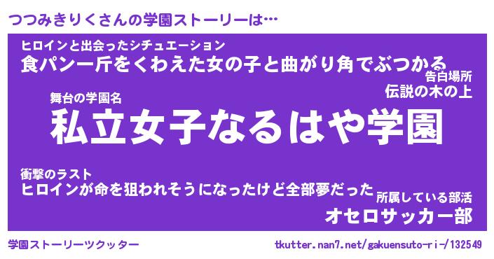 | 伝説のあだ名 | 『封印されしスナイパーつつみきりく』 |