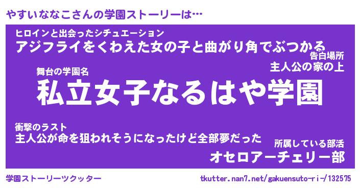 | 伝説のあだ名 | 『封印されしスナイパーやすいななこ』 |