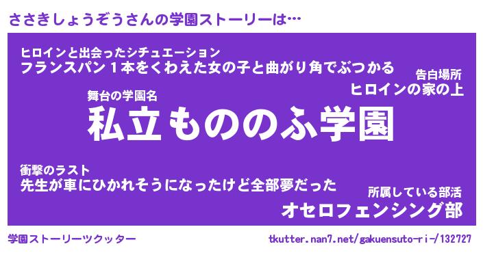 | 女子向けラノベタイトル風あだ名 | 『(仮)ささきしょうぞうのやんごとなき事情』 |