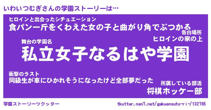 | ヒーロー風カッコイイあだ名 | 『スーパーイワイツムギ』『暗黒騎士イワ』 |