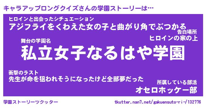 | 女子向けラノベタイトル風あだ名 | 『誰かこのキャラアップロングクイズを説明してください! ~契約から始まるウェディング~』 |