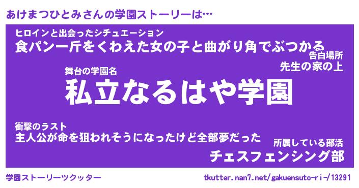 | 男性向けラノベタイトル風あだ名 | 『あけまつひとみの憂鬱』 |
