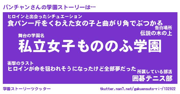 | 女子向けラノベタイトル風あだ名 | 『バンチャン姫と円卓の騎士』 |