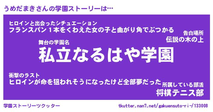 | ファンタジー風あだ名 | 『ウメフェル』『エターナルウメダマキー』 |