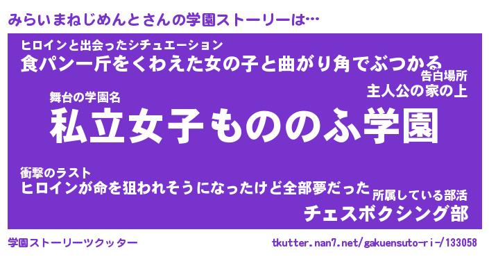 | ヘコむあだ名 | 『みらにー』『牛乳』『みらっぺ』 |
