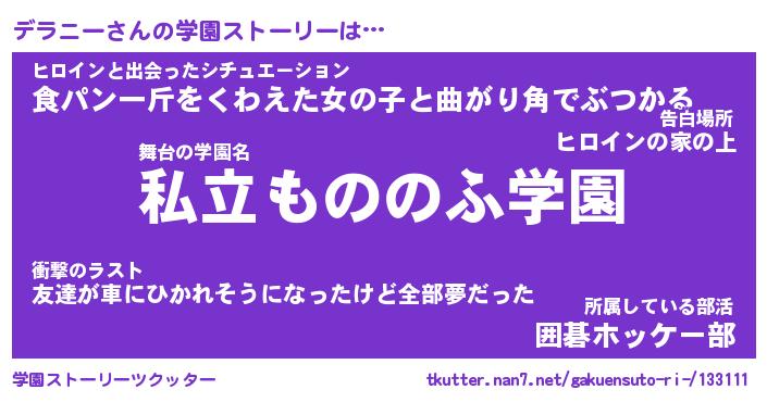 | 女子向けラノベタイトル風あだ名 | 『(仮)デラニーのやんごとなき事情』 |