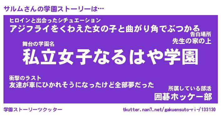 | ファンタジー風あだ名 | 『サルフェル』『エターナルサルムー』 |