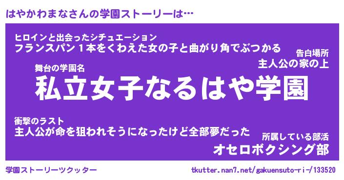 | 肩書あだ名 | 『はやかわまな御曹司』 |