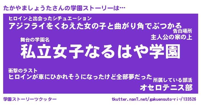 | 肩書あだ名 | 『たかやましょうた御曹司』 |