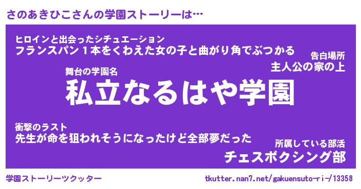 | 男性向けラノベタイトル風あだ名 | 『さのあきひこの憂鬱』 |