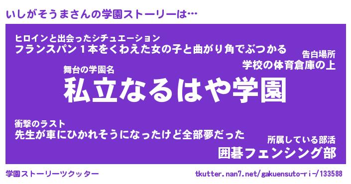 | 肩書あだ名 | 『いしがそうま御曹司』 |