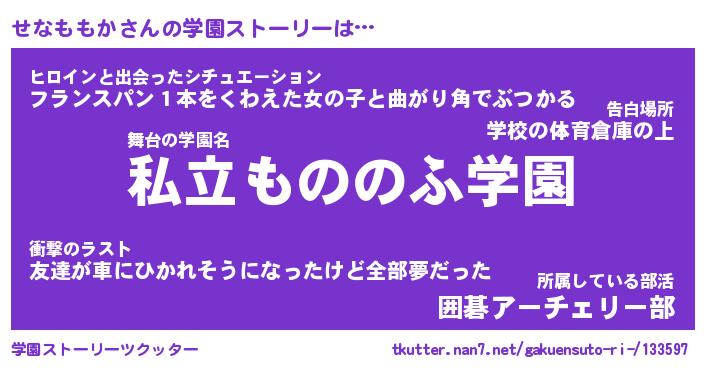 | 男性向けラノベタイトル風あだ名 | 『せなももかの憂鬱』 |