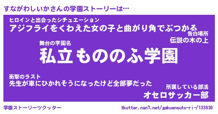 | 男性向けラノベタイトル風あだ名 | 『すながわしいかの憂鬱』 |