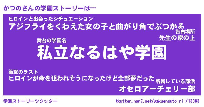 | 告白場所 先生の家の上 …「ふぃぎゅこ」 | 2月17日 06:24 |
