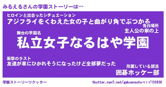 | 告白場所 先生の家の上 …「ふぃぎゅこ」 | 2月17日 06:24 |