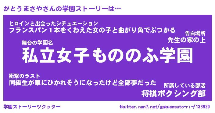 | 女子向けラノベタイトル風あだ名 | 『誰かこのかとうまさやを説明してください! ~契約から始まるウェディング~』 |
