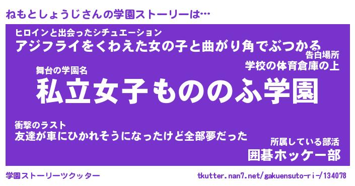 | 男性向けラノベタイトル風あだ名 | 『ネモトショウジアートオンライン』 |