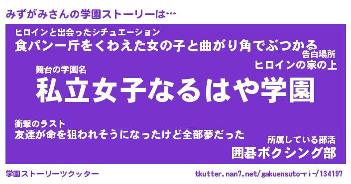 | ファンタジー風あだ名 | 『ミズフェル』『エターナルミズガミー』 |