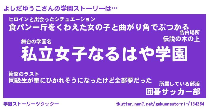 | 伝説のあだ名 | 『封印されしスナイパーよしだゆうこ』 |