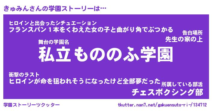 | 男性向けラノベタイトル風あだ名 | 『きゅみんの憂鬱』 |