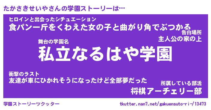 | 女子向けラノベタイトル風あだ名 | 『たかさきせいや姫と円卓の騎士』 |