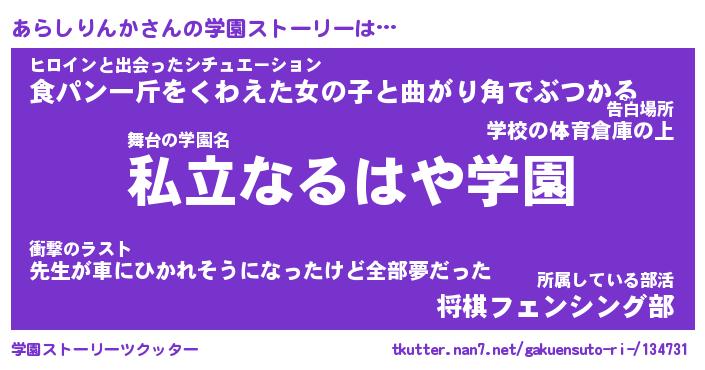 | 男性向けラノベタイトル風あだ名 | 『あらしりんかの憂鬱』 |