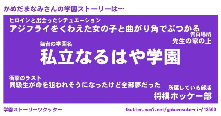 | 男性向けラノベタイトル風あだ名 | 『かめだまなみの憂鬱』 |