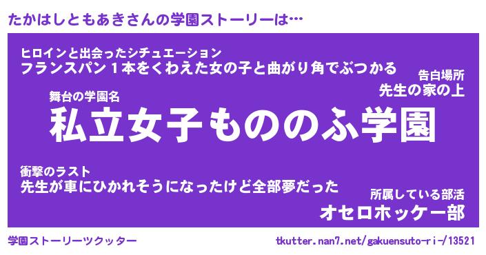 | 告白場所 先生の家の上 …「ふぃぎゅこ」 | 2月17日 06:24 |