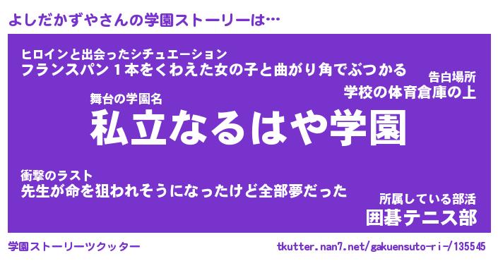 | 伝説のあだ名 | 『伝説のスナイパーよしだかずや』 |