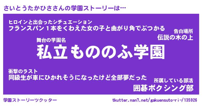 | 伝説のあだ名 | 『伝説の竜騎士さいとうたかひさ』 |