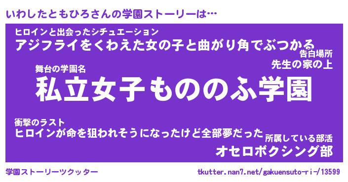 | 女子向けラノベタイトル風あだ名 | 『いわしたともひろ姫と円卓の騎士』 |