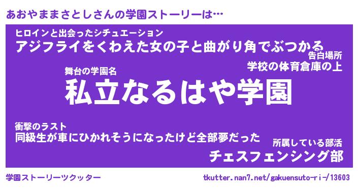 | 告白場所 先生の家の上 …「ふぃぎゅこ」 | 2月17日 06:24 |