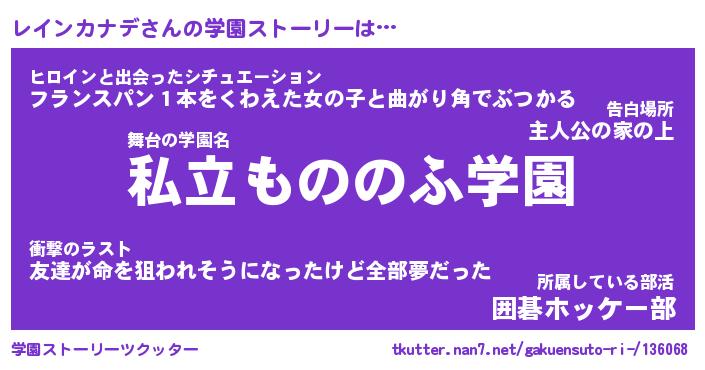 | 男性向けラノベタイトル風あだ名 | 『レインカナデの憂鬱』 |