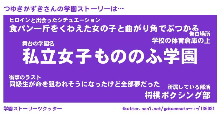 | 女子向けラノベタイトル風あだ名 | 『つゆきかずき姫と円卓の騎士』 |