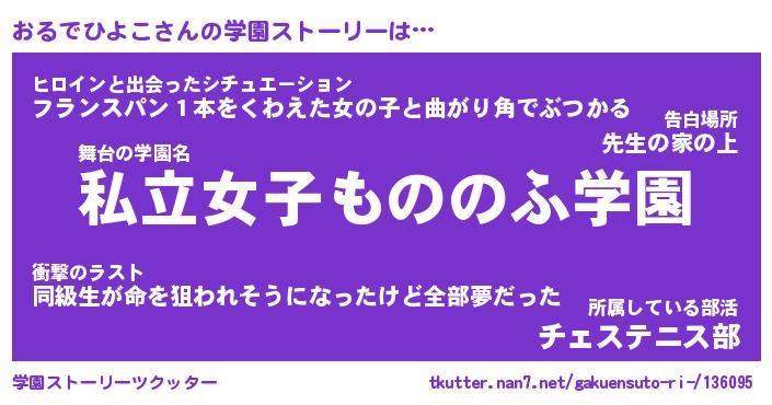 | 女子向けラノベタイトル風あだ名 | 『おるでひよこ姫と円卓の騎士』 |