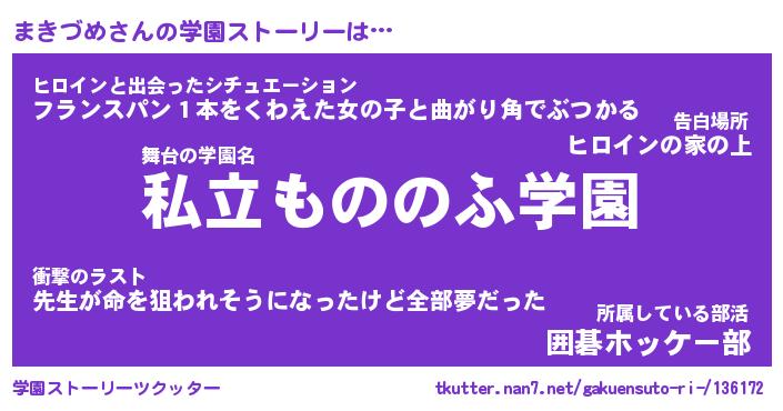 | 男性向けラノベタイトル風あだ名 | 『まきづめの憂鬱』 |